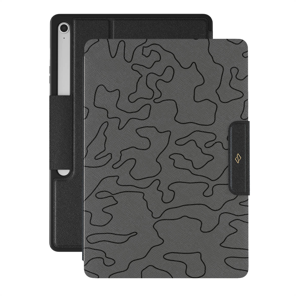 Let your imagination roam free with our Black Rock Samsung Galaxy Tab S10+ FE folio case. The minimalistic design, gray color, and abstract pattern create a duo that will make your Galaxy Tab a beautiful addition to your style. The minimalistic approach makes it very easy to make it your best accessory.