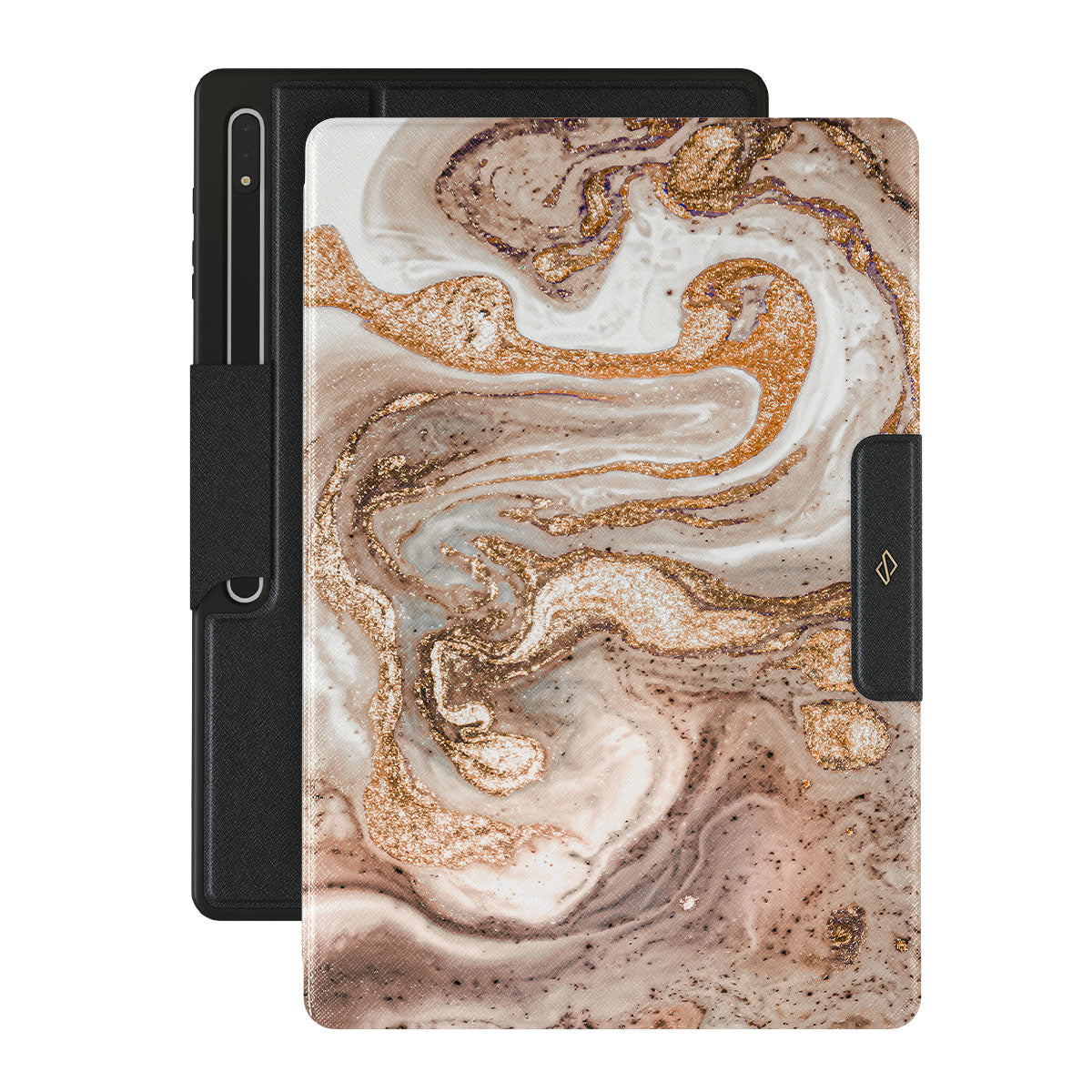 Our enchanting Cappuccino Samsung Galaxy Tab S10 Ultra folio case showcases a sophisticated and creamy marble pattern with golden swirls in it. The marble dream radiates elegance and luxury and is guaranteed to add some to your style.