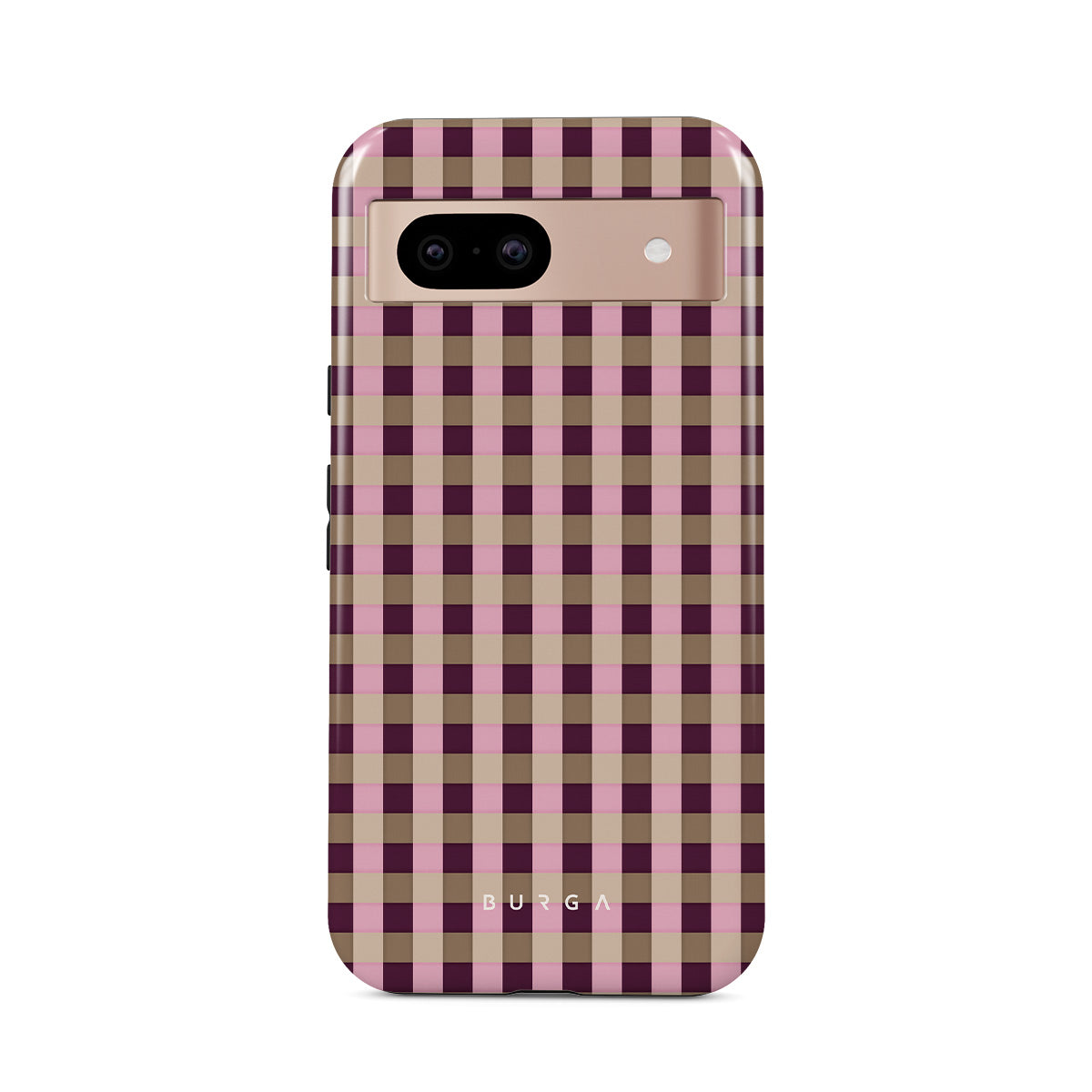 This design features: pink and burgundy plaid pattern, modern checkered style.