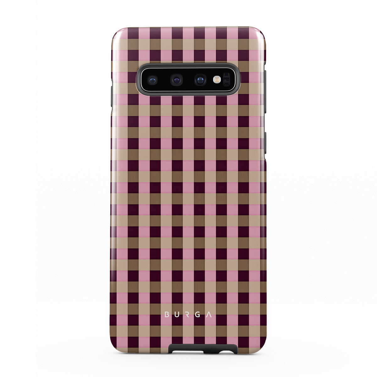 This design features: pink and burgundy plaid pattern, modern checkered style.