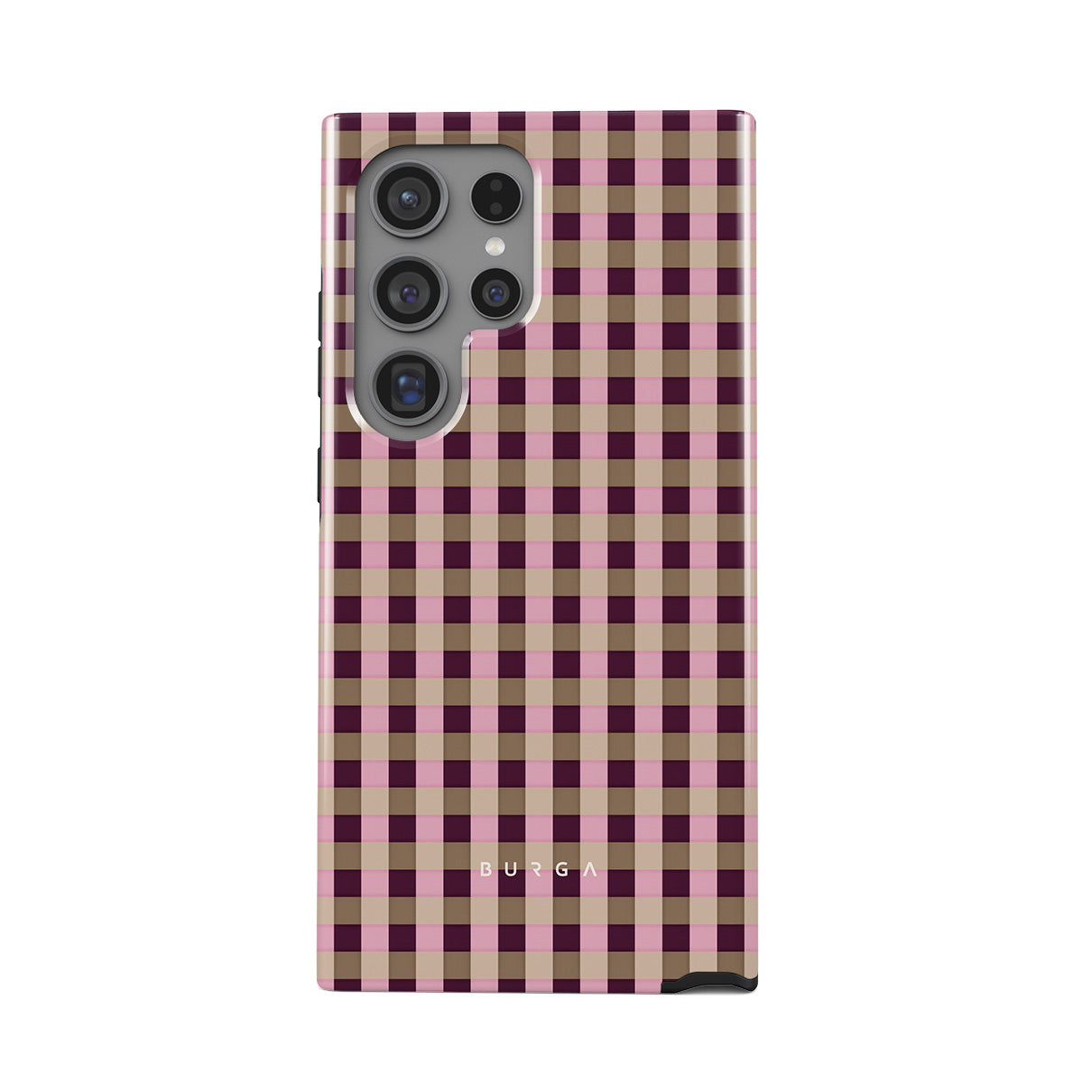 This design features: pink and burgundy plaid pattern, modern checkered style.