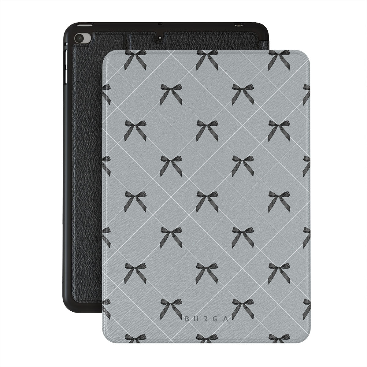 A subtle hint to a world of dance and soft melodies. Crisscrossing bows over a muted gray tone capture the flirtatious essence of the coquette-core aesthetic. Playful and sweet, our Coquette iPad Mini 7.9 (5th Gen) folio case design is perfect for those who find beauty in the details.