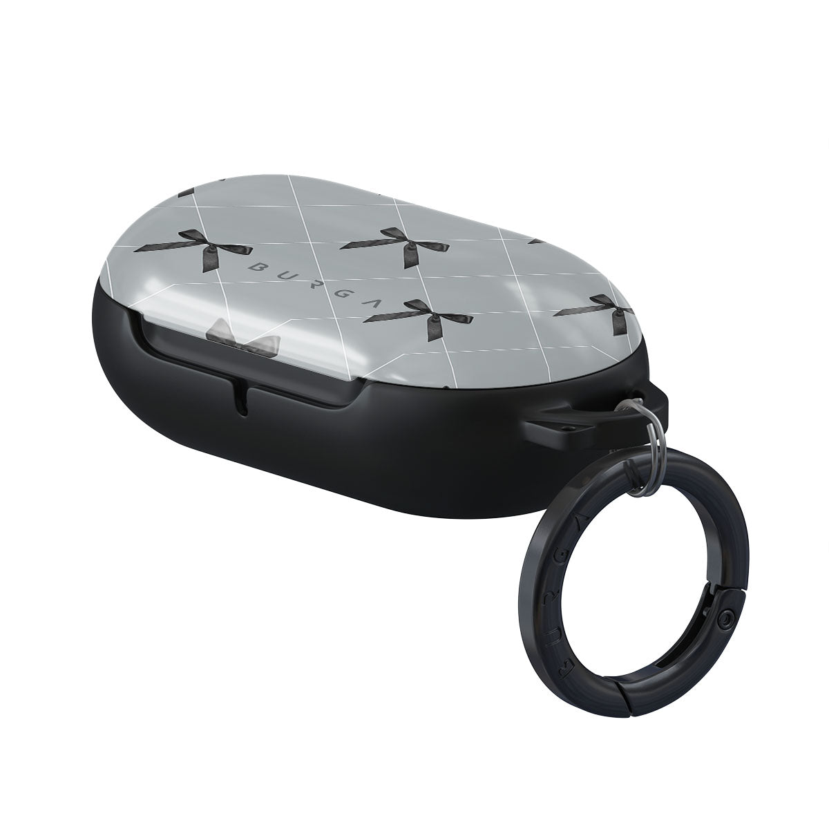 A subtle hint to a world of dance and soft melodies. Crisscrossing bows over a muted gray tone capture the flirtatious essence of the coquette-core aesthetic. Playful and sweet, our Coquette Samsung Galaxy Buds case cover design is perfect for those who find beauty in the details.