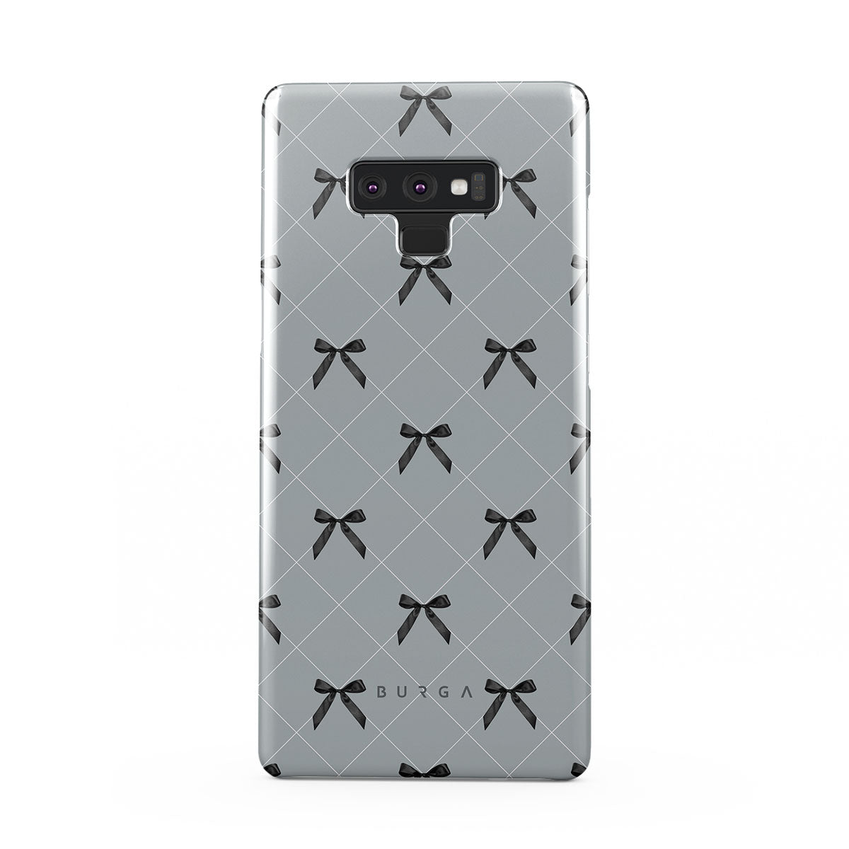 A subtle hint to a world of dance and soft melodies. Crisscrossing bows over a muted gray tone capture the flirtatious essence of the coquette-core aesthetic. Playful and sweet, our Coquette Samsung Galaxy Note 9 phone case design is perfect for those who find beauty in the details.