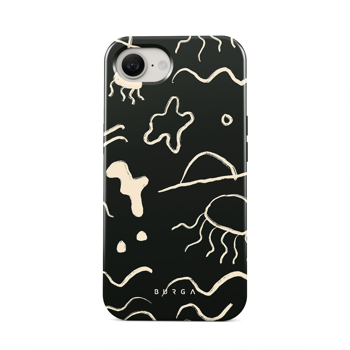 Our Eclipse iPhone 16e design reflects the enigmatic beauty of the ocean during a solar eclipse. The dark hues and bright accents represent how the light dances on the water, while the waves and jellyfish capture the serene yet dynamic nature of the ocean.