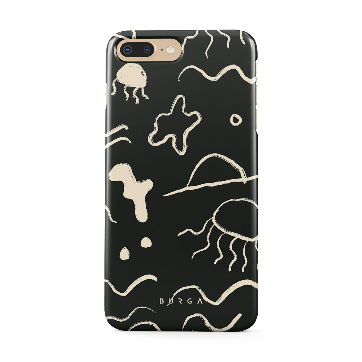Our Eclipse iPhone 7 Plus / 8 Plus design reflects the enigmatic beauty of the ocean during a solar eclipse. The dark hues and bright accents represent how the light dances on the water, while the waves and jellyfish capture the serene yet dynamic nature of the ocean.