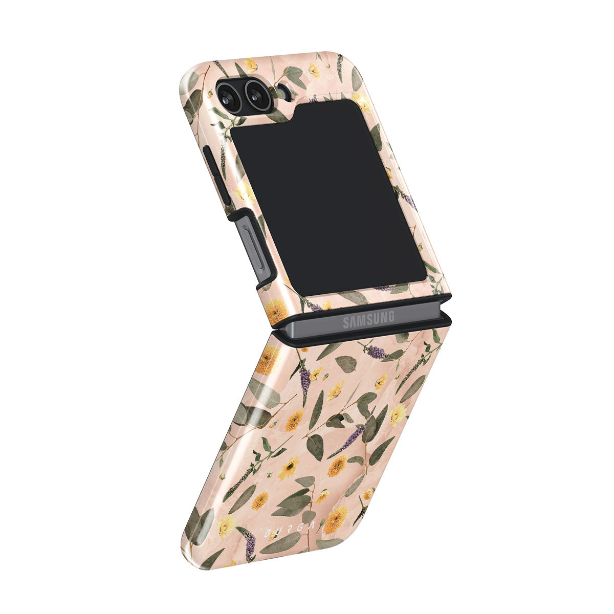 Sunday Brunch Samsung Galaxy Z Flip 5 phone case features a timeless flower pattern. The soft-toned case with a pop of lavender and yellow colors will add a splash of energy to your style while protecting your phone from dangerous falls.