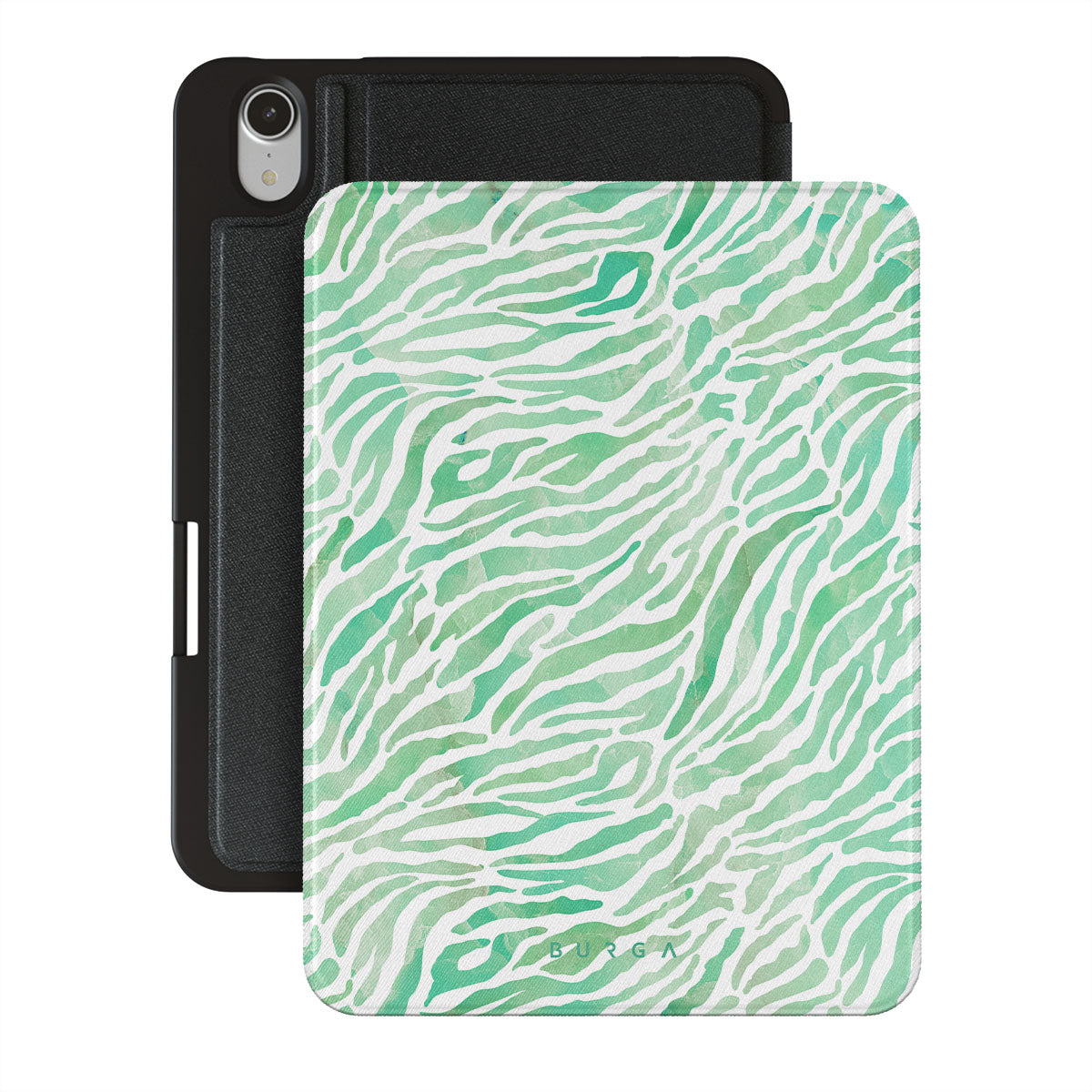Our Free Spirit iPad Mini 8.3 (A17 Pro/6th Gen) 2021 folio case features an exotic zebra pattern in varying shades of green. Keep your spirits up, as there is no need to worry about your iPad, as this trendy case is not only pretty but offers the heavy-duty protection that your celliPad requires.