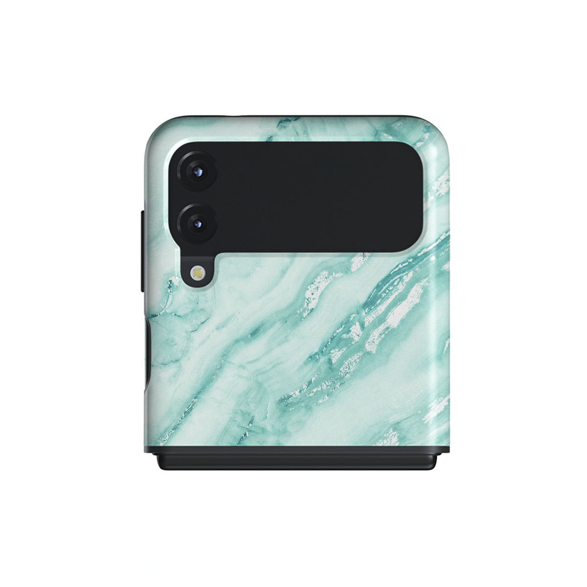 Add freshness to your style with our Fresh Breeze Samsung Galaxy Z Flip 3 phone case. The soft cyan color of the case is emphasized in a unique marble pattern. Do not let the softness of the color deceive you; the case still offers heavy-duty protection for your cellphone.