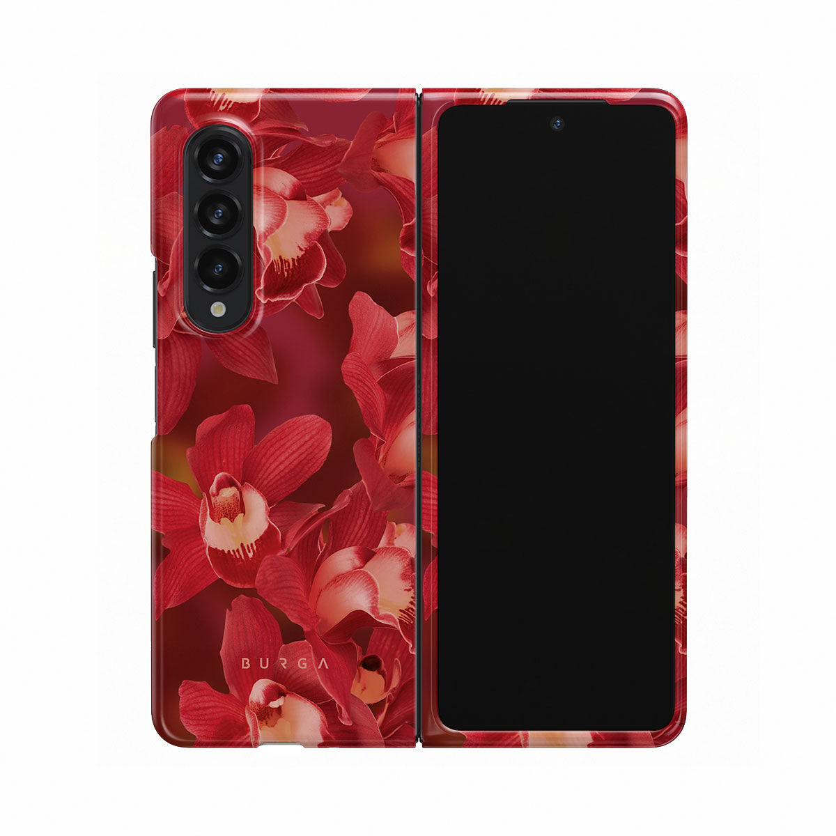 The deep red orchids emerge with a passionate intensity, evoking the fervor and depth of emotions that come with fully experiencing life. They are a vibrant call to embrace every heartbeat, to live deeply and love boldly. Discover the Goddess Energy Samsung Galaxy Z Fold 3 phone case design.