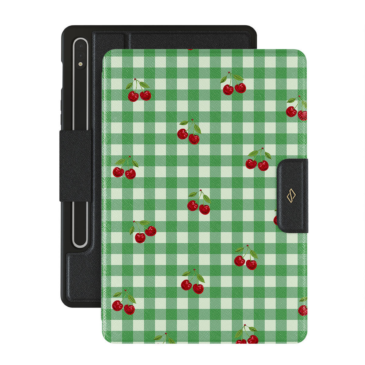 The Little Life Samsung Galaxy Tab S9 FE folio case design: green checks, simple and true, like a patch of grass under a tree, where you can sit and watch the small world go by, every leaf a chapter in nature’s story.