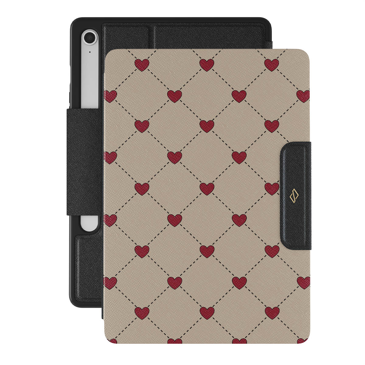 Secrets of the heart whispered between elegant beige diamonds. Every moment, a red heart shimmers—a hidden message, a silent wish, a love letter to the beholder. Discover our Love Letter Samsung Galaxy Tab S10 FE folio case design.