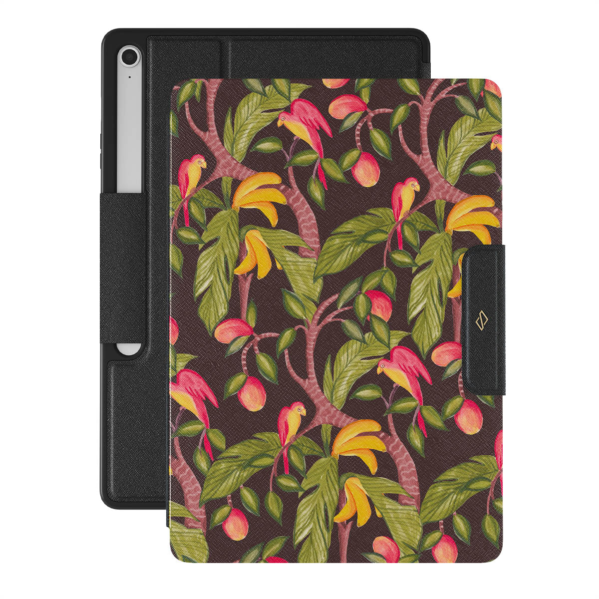 A lush botanical fantasy where ripe mangoes hang like forbidden fruit. Deep greens and juicy oranges pull you into a tropical escape. If this Samsung Galaxy Tab S10+ FE design had a voice, it would purr.
