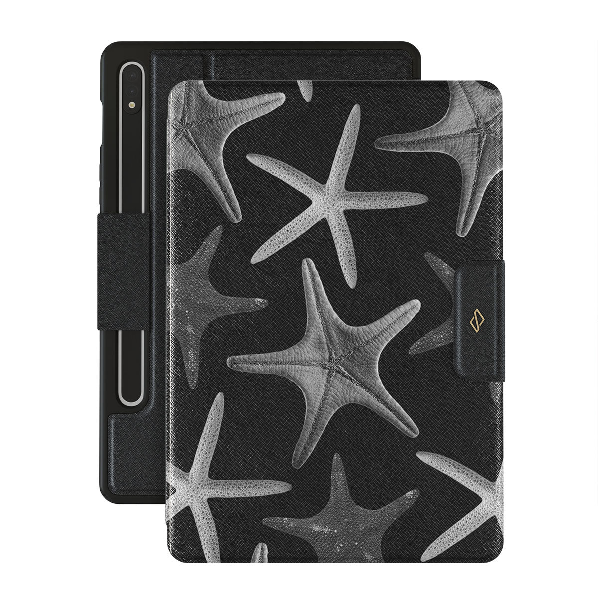 It's almost as if you can hear the soft murmur of the sea. The deep, mysterious hues of the midnight ocean come to life in this Samsung Galaxy Tab S9 FE folio case with a mesmerizing design as the sea itself. The dark, moody colors and intricate patterns create a sense of drama and intrigue, while the overall effect is one of effortless sophistication and timeless style.