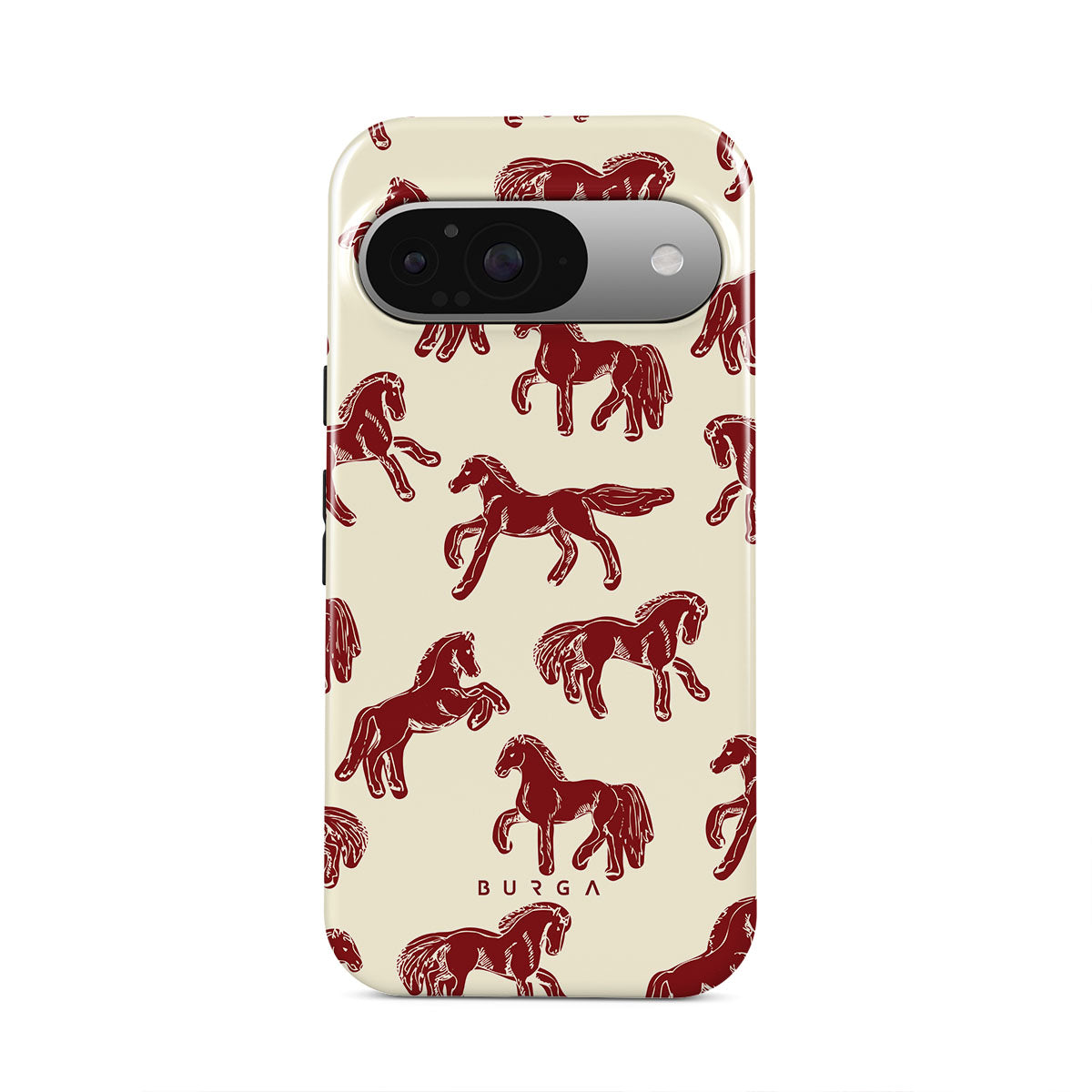 It's time to unleash your wild side with the Mustang design. Bold red horses gallop across a nude background, capturing the spirit of untamed adventure. This Google Pixel 9 phone case is perfect for the free-spirited souls ready to ride into the unknown.