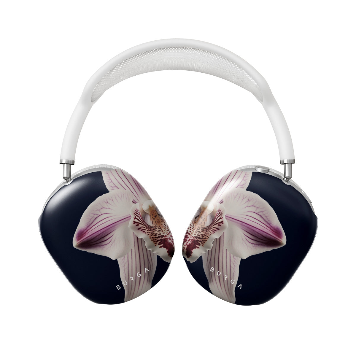The white orchid blooms boldly upon a night sky blue, a beacon of clarity in the darkness. Our Nectar Apple AirPods Max case cover design speaks to the soul's desire to find light within, to illuminate the hidden paths of self-discovery that only reveal themselves under the cloak of introspection.