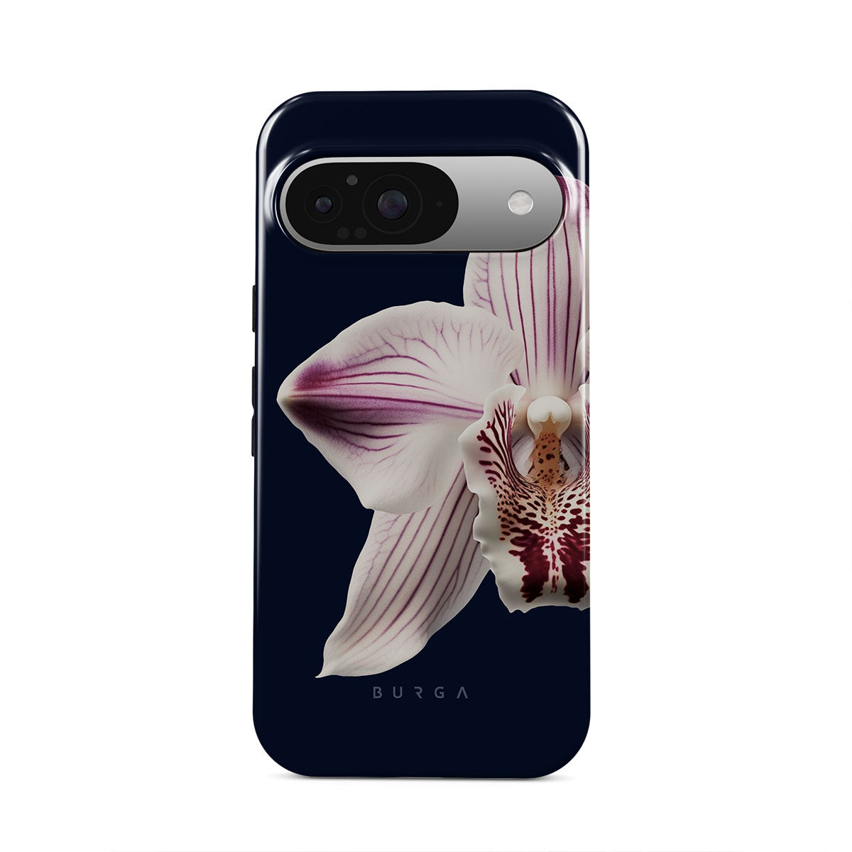 The white orchid blooms boldly upon a night sky blue, a beacon of clarity in the darkness. Our Nectar Google Pixel 9 phone case design speaks to the soul's desire to find light within, to illuminate the hidden paths of self-discovery that only reveal themselves under the cloak of introspection.