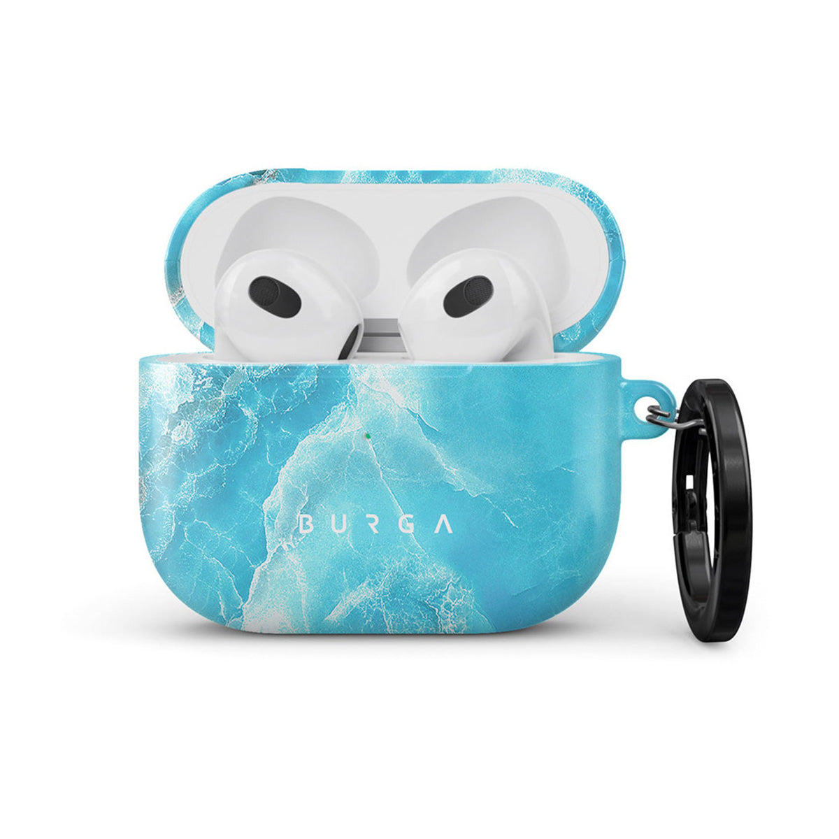 Elevate your style with our Ocean Waves Apple Airpods 3 case cover. The electric blue marble design is a real eye candy that creates a new accessory by simply protecting your beloved tech. Our case fits perfectly snug around Apple Airpods 3 . “Like a glove!” one might say. And it won’t disrupt the wireless charging capabilities of the newer model. There’s even an LED light indicator to prove it (don’t worry, wired charging still works, too). When fitted, the BURGA case will protect the delicate Apple Airpods 3 case beneath it from scratches, bumps, and drops while remaining scratch-free itself. Our signature design pattern prints are High Quality, and will never peel or fade away- thanks to our unique printing technology. And finally, a handy carabiner is there to make your life easier and more convenient: just snap it around your keys or belt loop and tackle the day head-on. Your music is right there by your side when you need it.