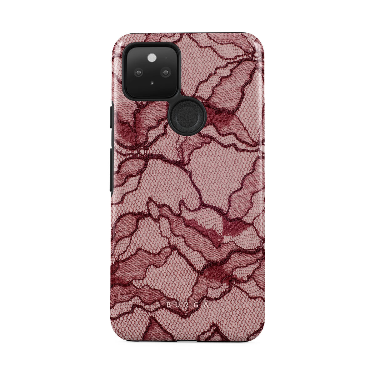 Channel your inner power with our Office Siren Google Pixel 5 phone case design. A soft rosé backdrop and dark pink lace blend elegance and boldness, perfect for those who make quiet yet undeniable statements with confidence.