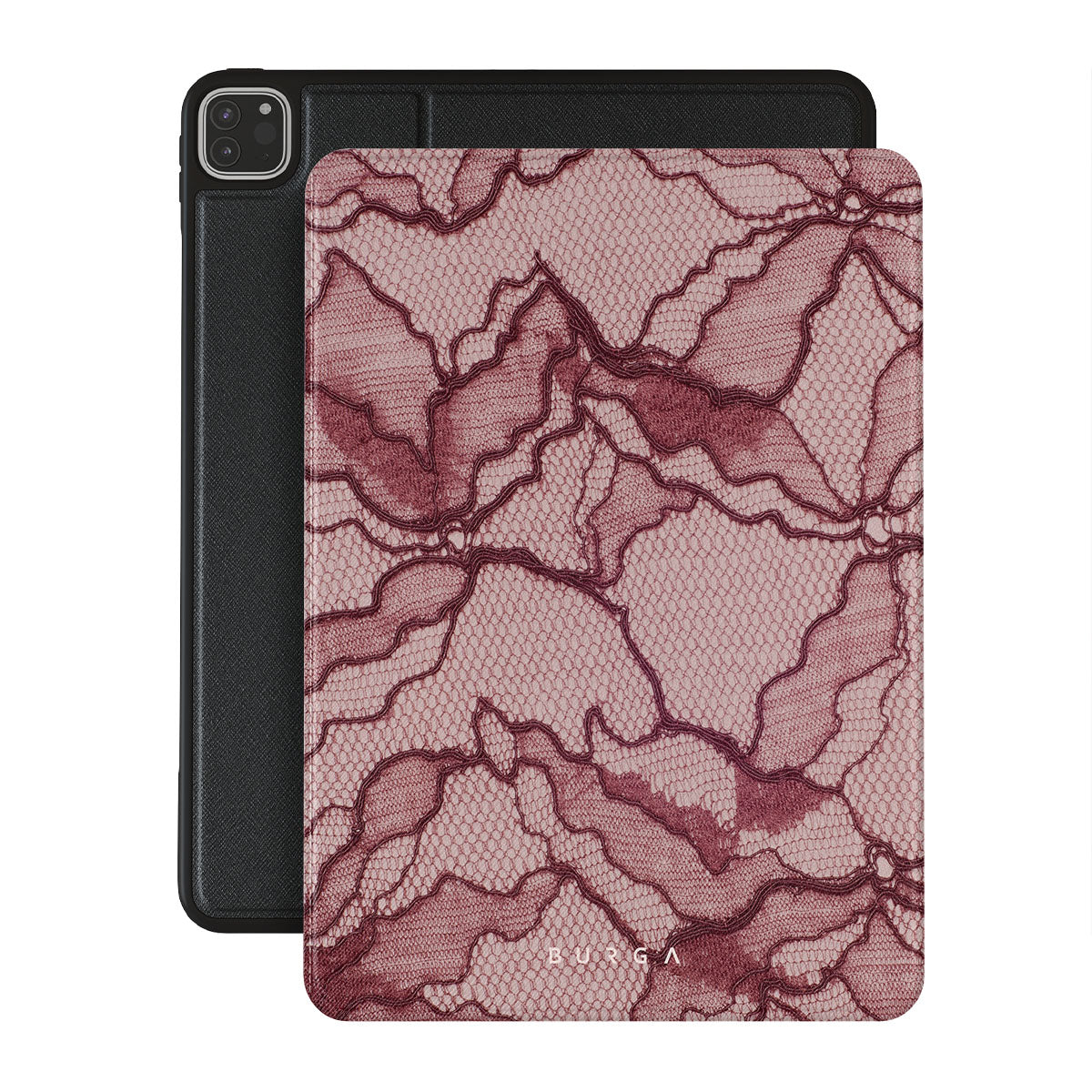 Channel your inner power with our Office Siren iPad Pro 12.9 (6th/5th Gen) folio case design. A soft rosé backdrop and dark pink lace blend elegance and boldness, perfect for those who make quiet yet undeniable statements with confidence.