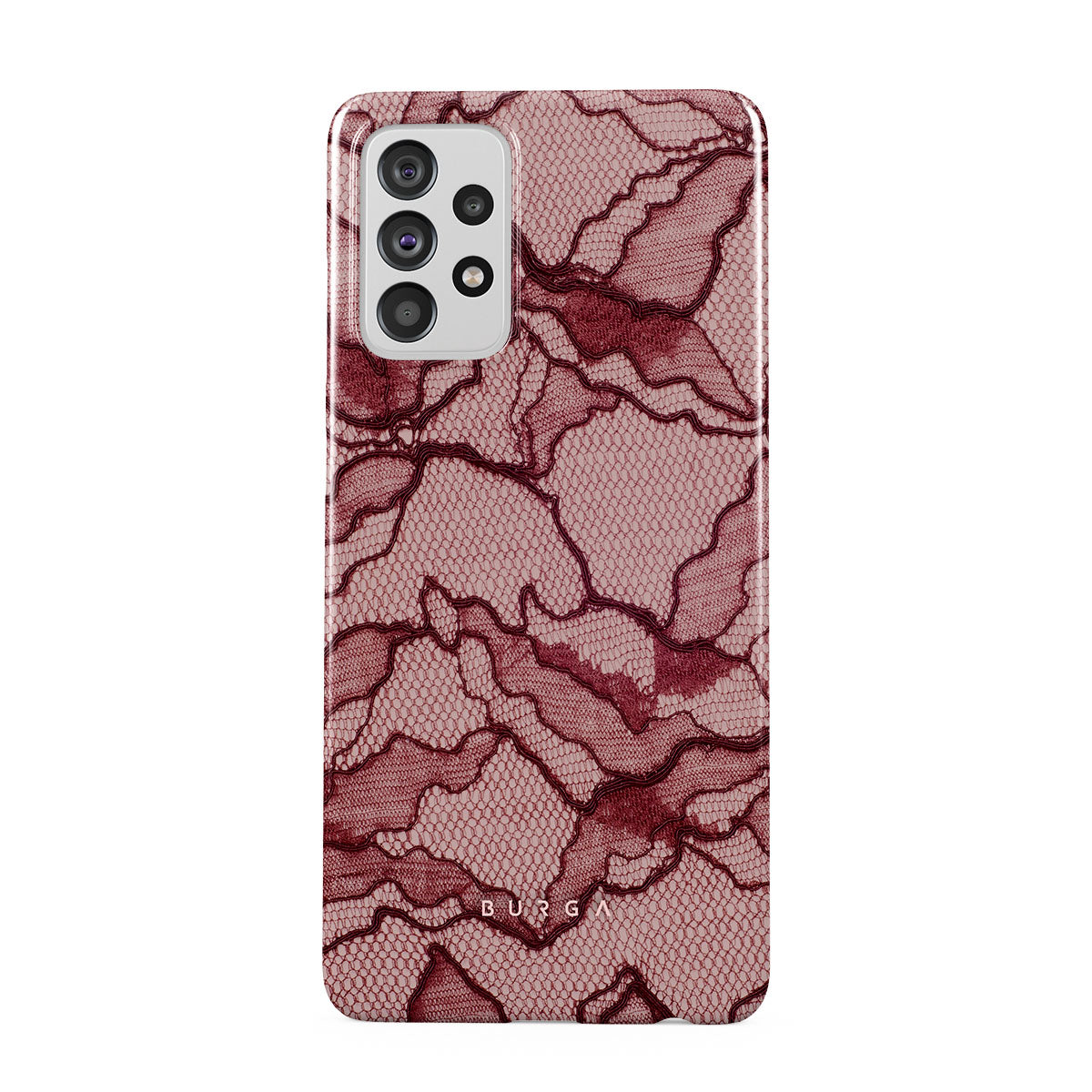 Channel your inner power with our Office Siren Samsung Galaxy A72 4G / 5G phone case design. A soft rosé backdrop and dark pink lace blend elegance and boldness, perfect for those who make quiet yet undeniable statements with confidence.