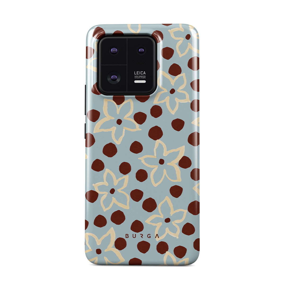 The Frutaria Xiaomi 13 Pro phone case design design: retro surf motel wallpaper meets vintage ceramics. The soft florals, earthy dots, and cool-toned palette give major “forgotten seaside town in the ‘70s” energy.