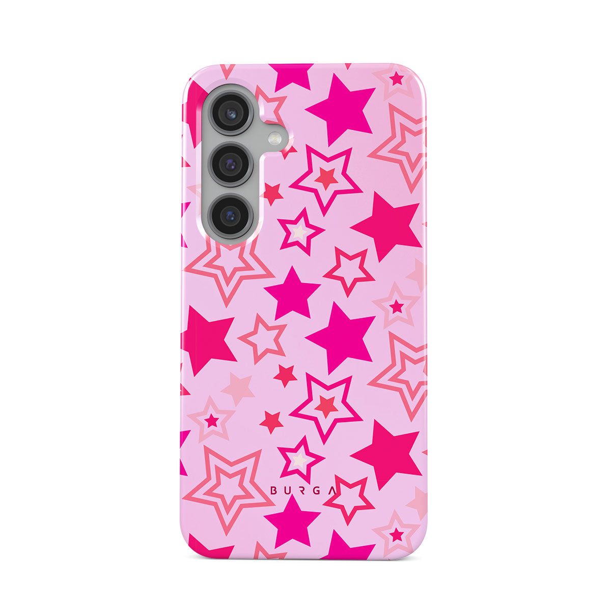 Buckle up for a starry ride, and let's twirl under the Plastic Sky. Neon stars shimmering across a cheeky rose-tinted galaxy create a playful space-disco atmosphere. Be the center of the universe with our Plastic Sky Samsung Galaxy S24 Plus phone case!