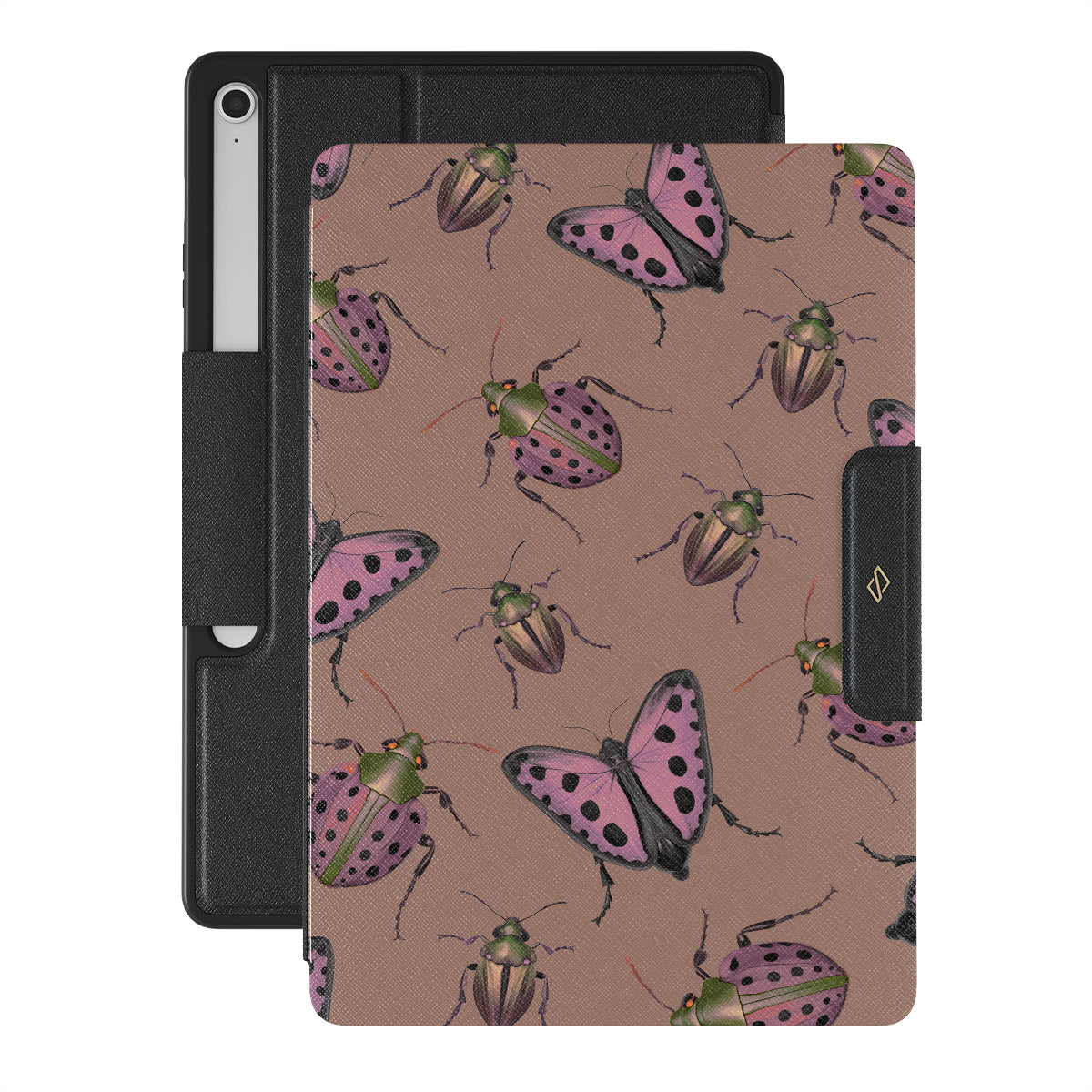 Embrace the symbiosis of nature with the Runaway Samsung Galaxy Tab S10+ FE folio case, where the delicate beauty of butterflies meets the earthy charm of beetles. This design is a celebration of life's intricate balance, a reminder that everything in nature has its place.