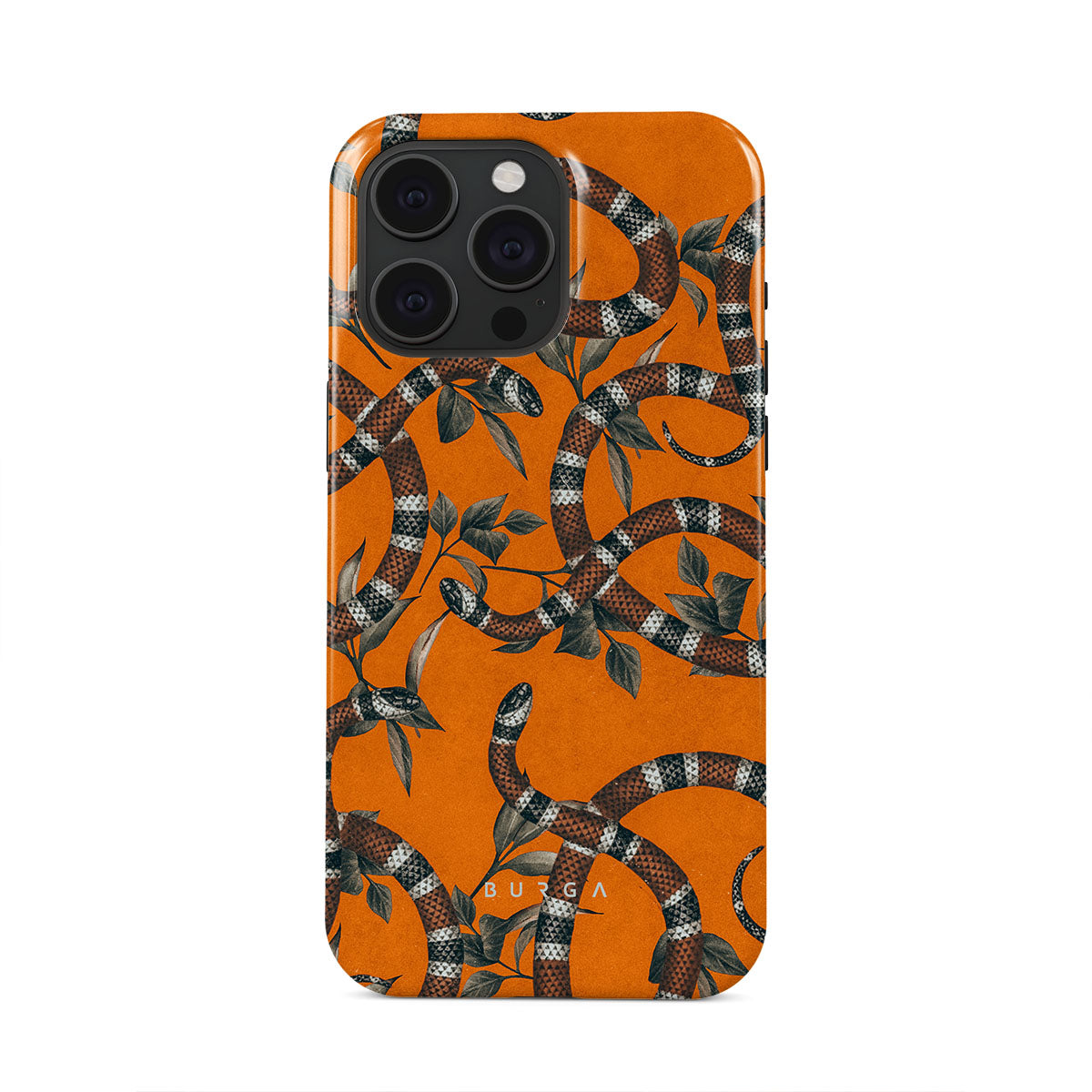 Take a bit of fierceness with yourself with our bright orange and dangerously beautiful iPhone 15 Pro Max phone case with a snake pattern. This case is real eye candy for fashion lovers and just as needed for those who strive to keep their phones protected.