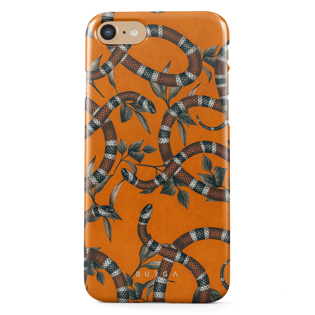 Take a bit of fierceness with yourself with our bright orange and dangerously beautiful iPhone 7 / iPhone 8 phone case with a snake pattern. This case is real eye candy for fashion lovers and just as needed for those who strive to keep their phones protected.