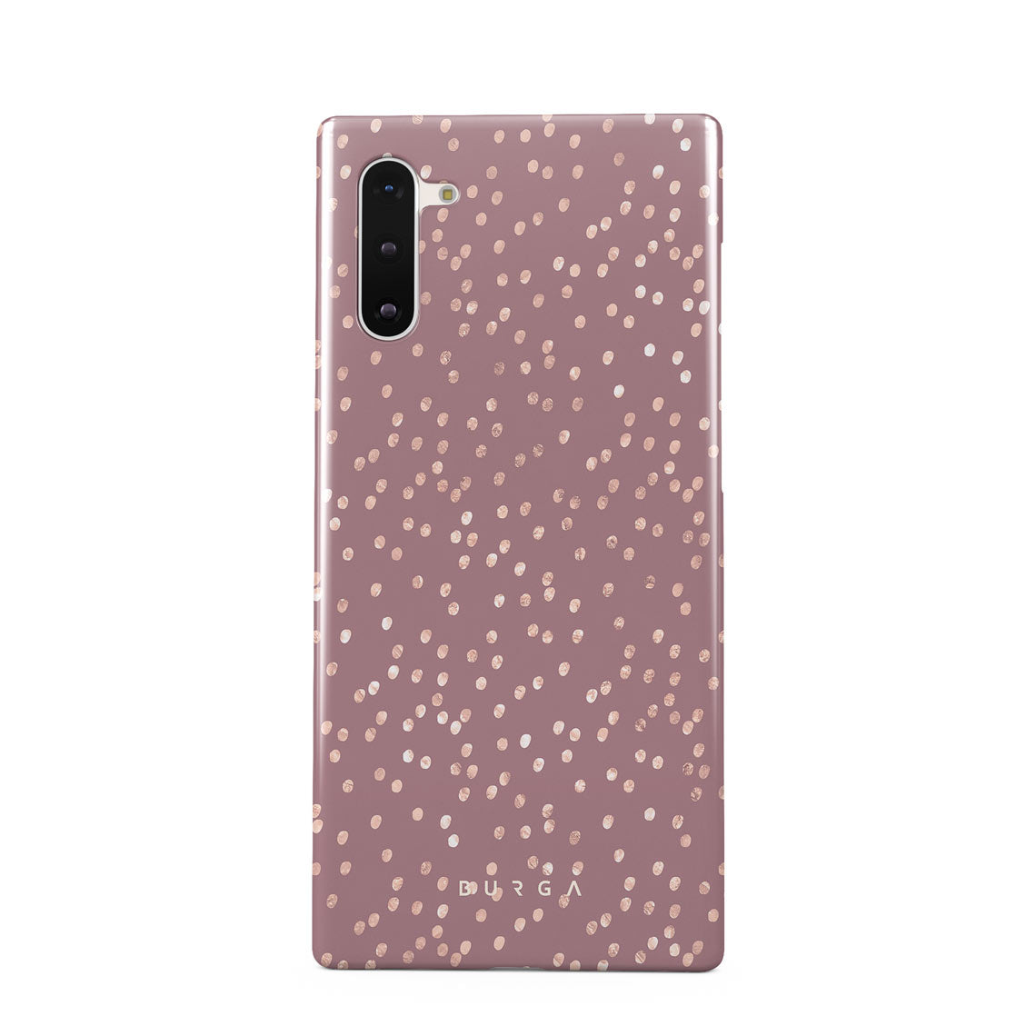 Trendy mauve color as a background for the gold-colored spots creates true beauty. Make your Samsung Galaxy Note 10 stand out with our protective and pretty Hot Cocoa phone case. The spotted pattern adds a touch of luxury to your phone, while the case's hard-shell nature offers much-needed protection.