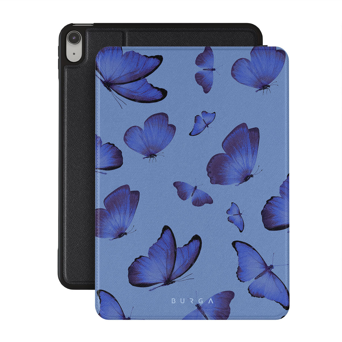 Bright blue butterflies dance across a sky-blue expanse, a visual representation of freedom and transformation. Our Spring Court iPad 10.9 (A16/10th Gen) folio case design symbolizes the soul's eternal dance with change, each flutter a step towards becoming who we are meant to be.