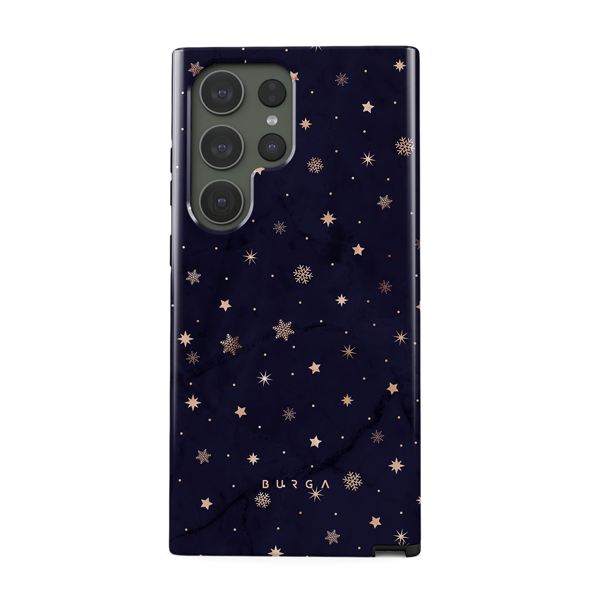 With a dreamy combination of dark blue and golden colors in the pretty star pattern found in our Midnight Kiss Samsung Galaxy S23 Ultra phone case, you can protect your phone and add a magical feel to it just in one go.