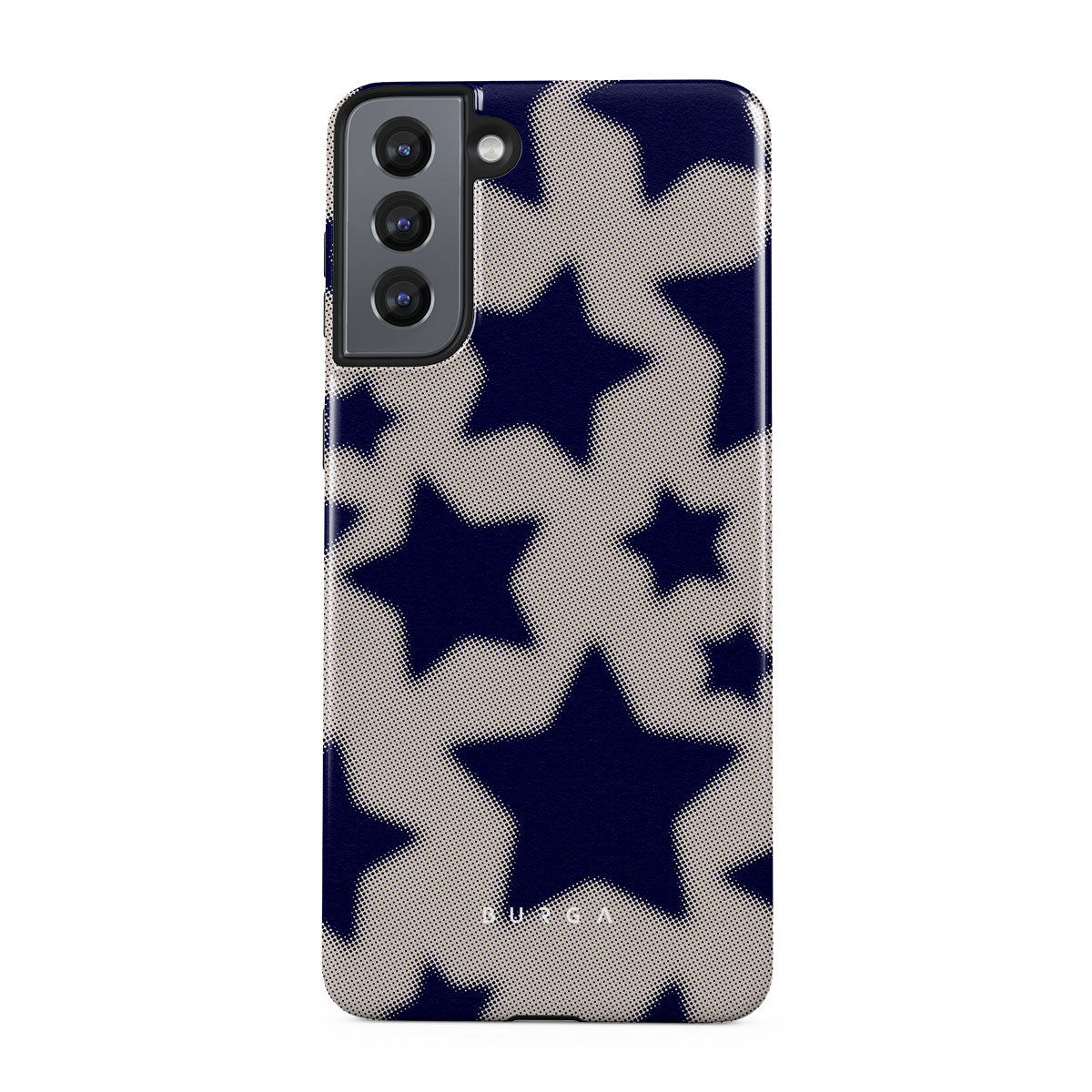Rock a touch of '90s nostalgia with the Starstruck Samsung Galaxy S21 phone case design. Its nude background is scattered with bold blue stars; each star hints at stories of hope and youthful dreams, blending simplicity with depth.