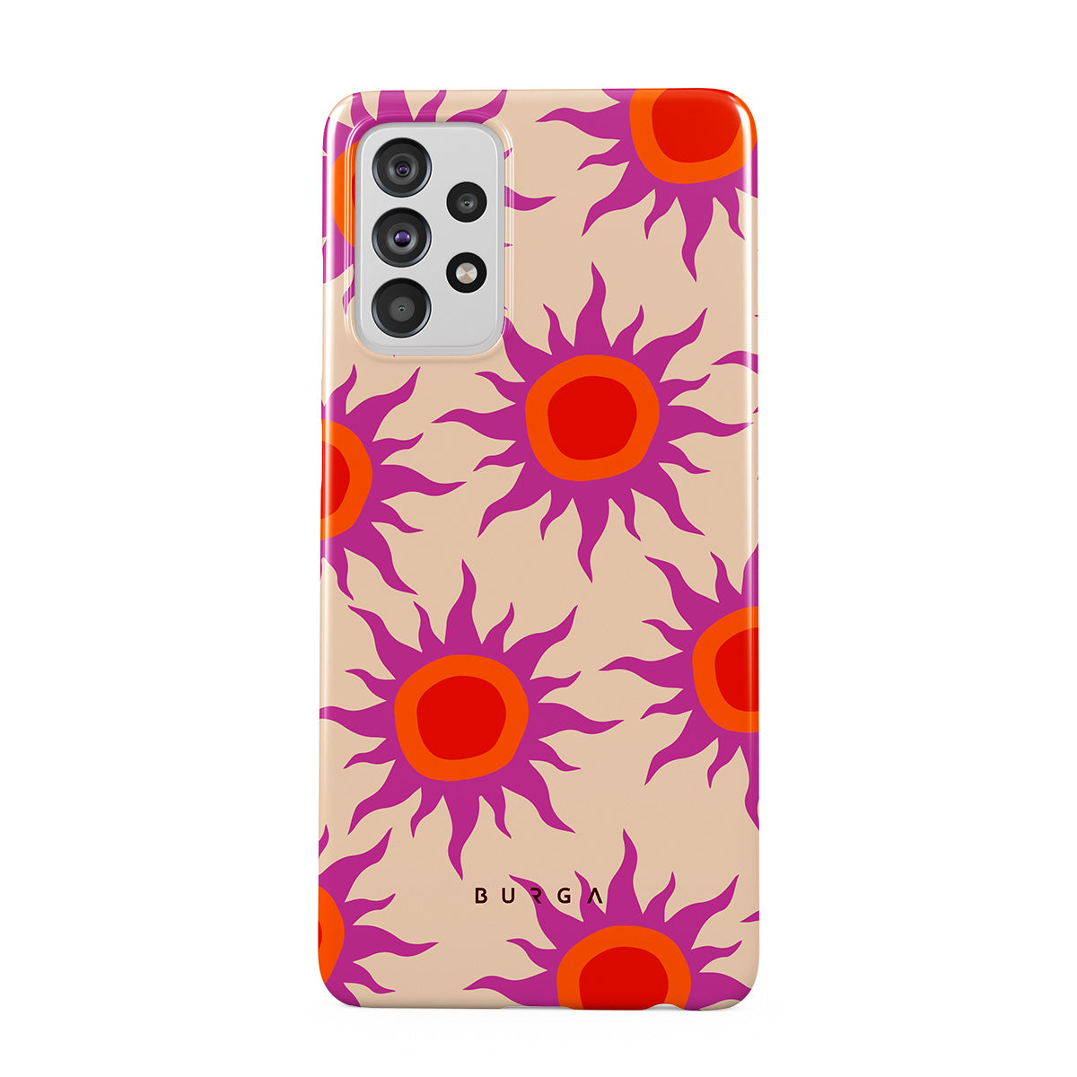 Discover the radiant serenity of the Sunset Glow design, a harmonious blend of soothing pastels and fiery suns. Vivacious viva magenta rays add a playful touch, perfectly balancing tranquility and dynamism. More than just a fashion accessory, this striking Samsung Galaxy A72 4G / 5G phone case mirrors your unique personality and zest for life.