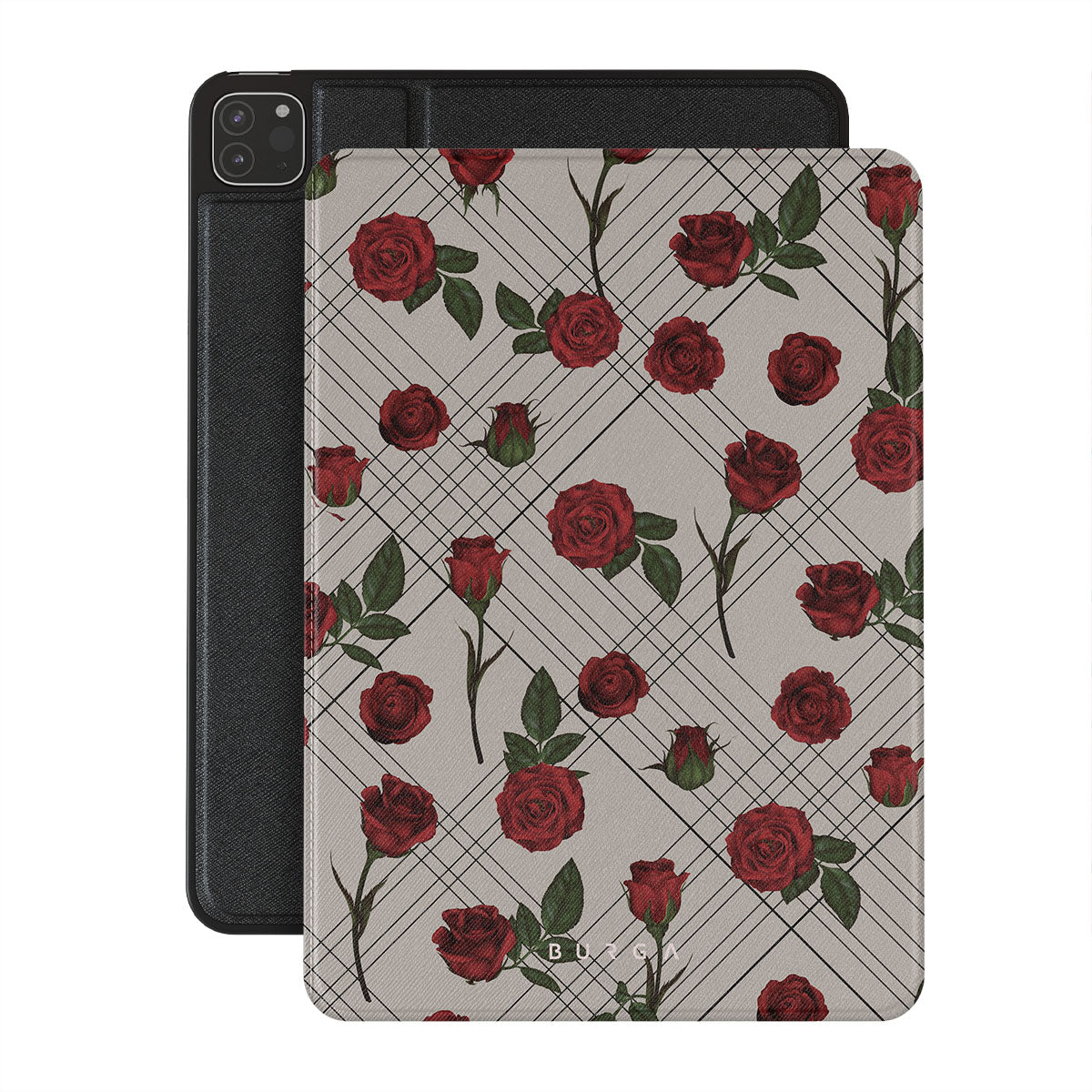 Embrace the subtle rebellion of our Sweet Sin iPad Pro 12.9 (4th/3rd Gen) folio case design. On a muted nude-gray canvas, scattered small red roses hint at passions hidden beneath the surface. A design that balances the delicate with the daring. Crafted for those who find beauty in the unexpected and wear their edge with elegance.