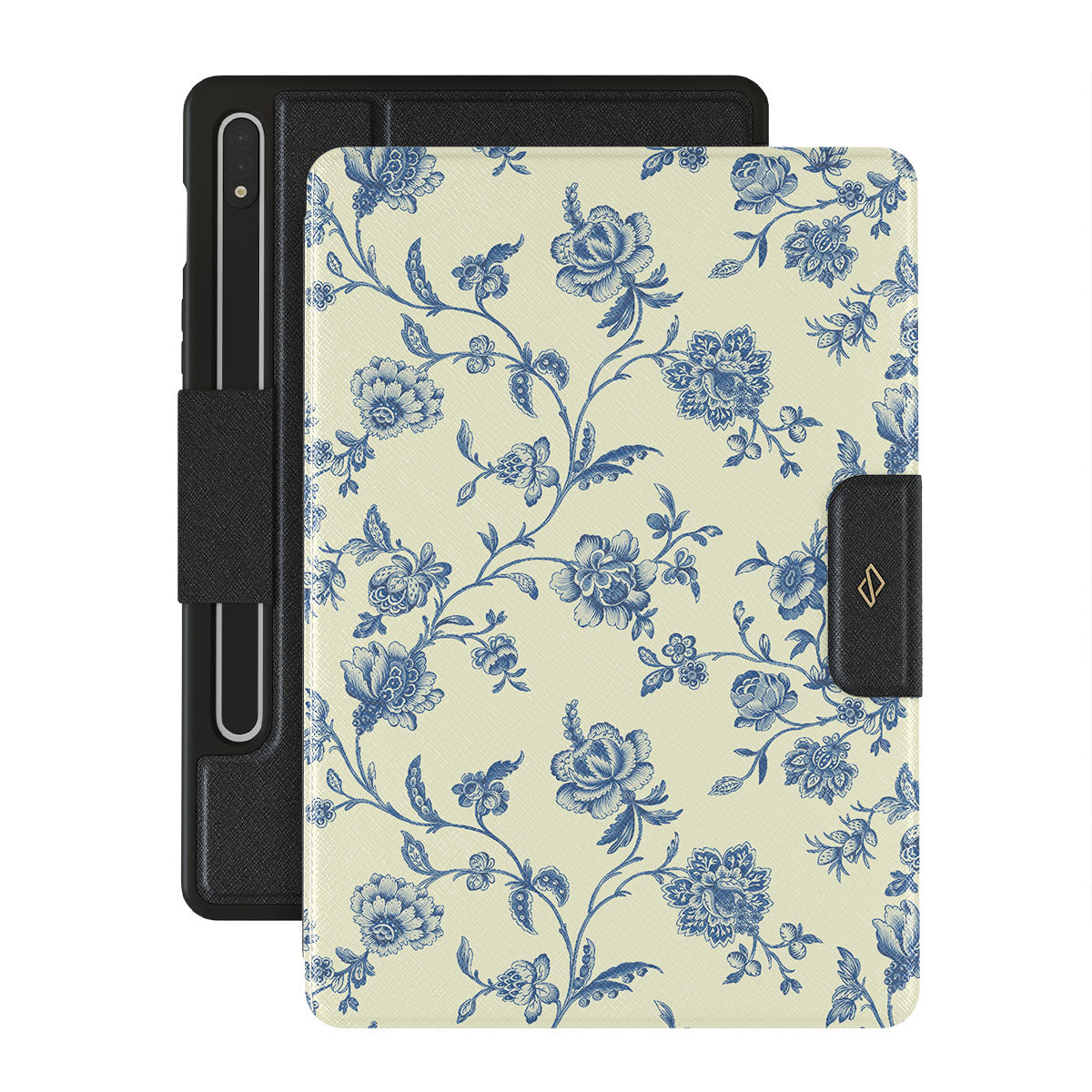 Hey, Sweetheart, here's a style secret: vintage blue flowers for that old-school charm. This Samsung Galaxy Tab S9 FE folio case design is perfect when you want to be sweet yet effortlessly cool.