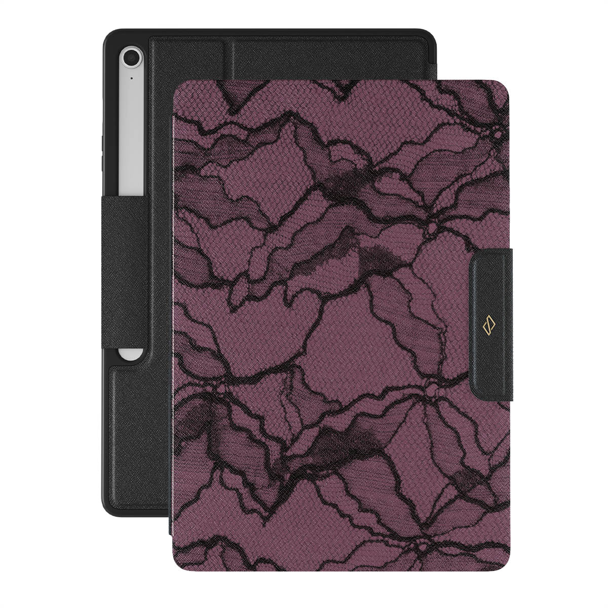 This design, reminiscent of a fragment of a vintage lace dress, captivates and invites touch. It’s perfect for the woman who commands attention with just a glance. With this Samsung Galaxy Tab S10+ FE folio case design, every day is your stage, making you That Girl – the one who effortlessly blends mystery, boldness, and a flair of old-world charm into today's trends.