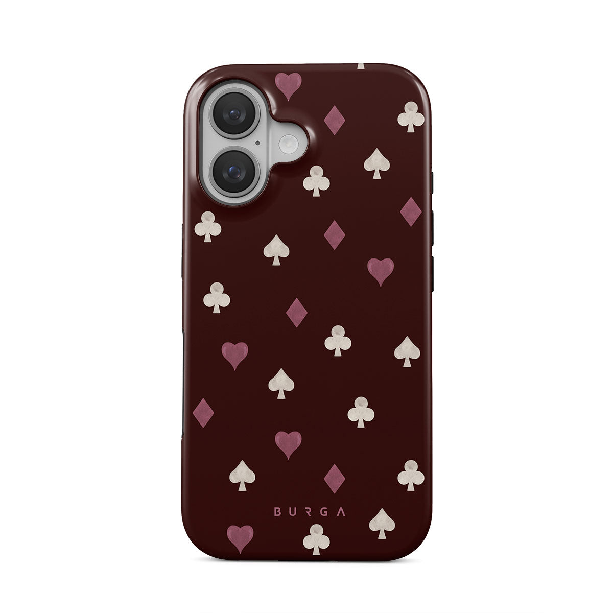 Nothing is as it appears. Hearts, clubs, diamonds, and spades—stacked in your favor or playing against you? This iPhone 16 Plus phone case design features a rich burgundy background and minimalist suits that make for a game where the rules are constantly shifting.