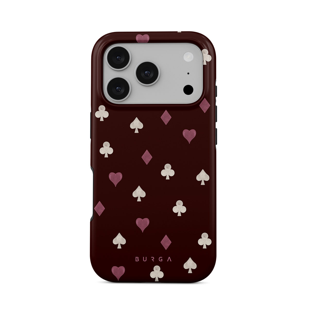 Nothing is as it appears. Hearts, clubs, diamonds, and spades—stacked in your favor or playing against you? This iPhone 17 Pro phone case design features a rich burgundy background and minimalist suits that make for a game where the rules are constantly shifting.