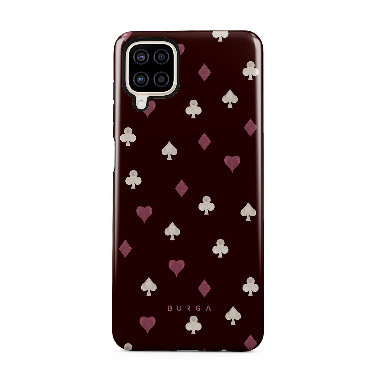 Nothing is as it appears. Hearts, clubs, diamonds, and spades—stacked in your favor or playing against you? This Samsung Galaxy A12 4G phone case design features a rich burgundy background and minimalist suits that make for a game where the rules are constantly shifting.