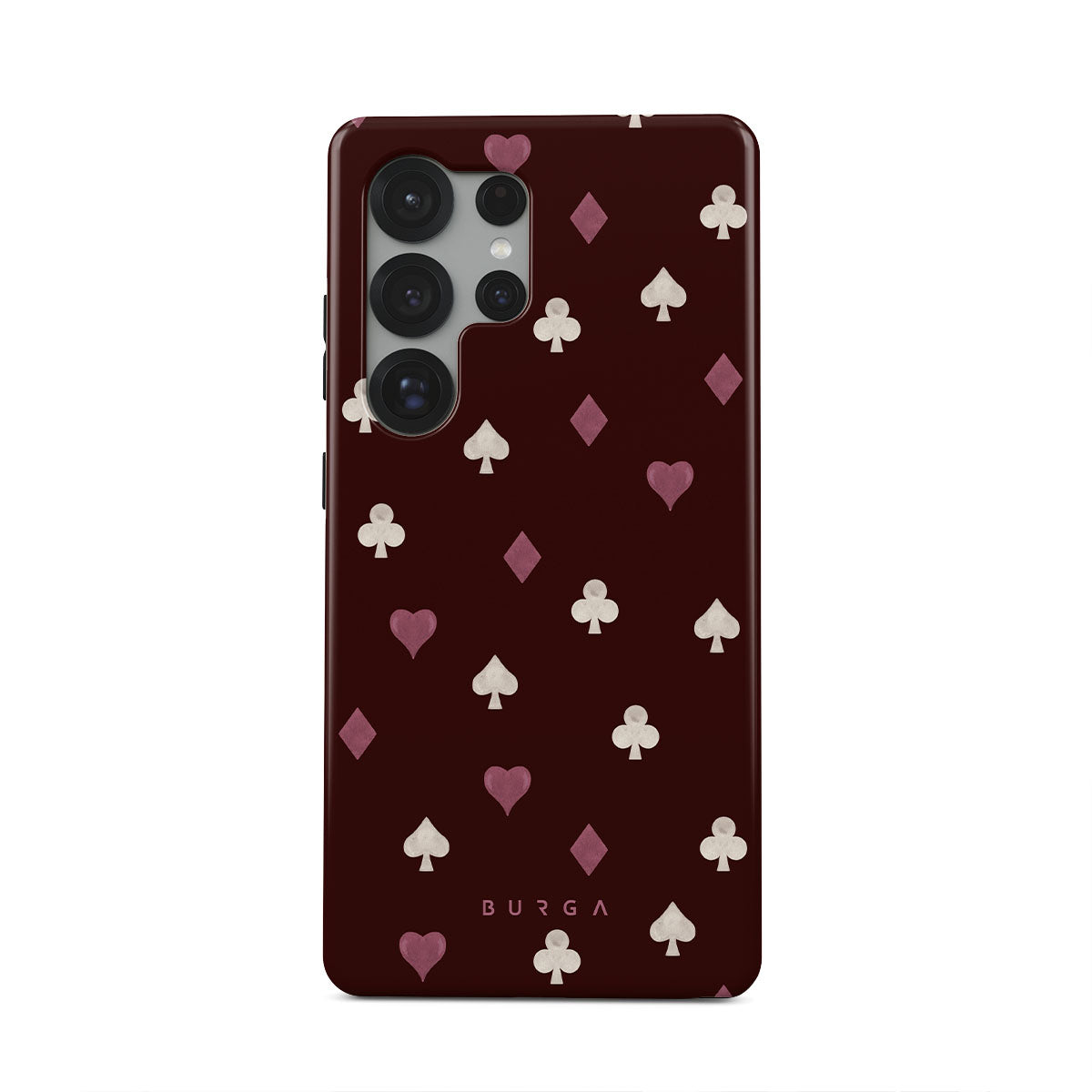 Nothing is as it appears. Hearts, clubs, diamonds, and spades—stacked in your favor or playing against you? This Samsung Galaxy S25 Ultra phone case design features a rich burgundy background and minimalist suits that make for a game where the rules are constantly shifting.