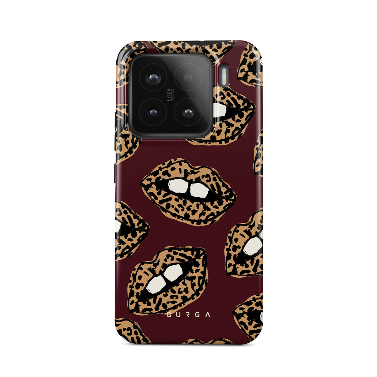 This design features: leopard print, lips, open lips, colored lips